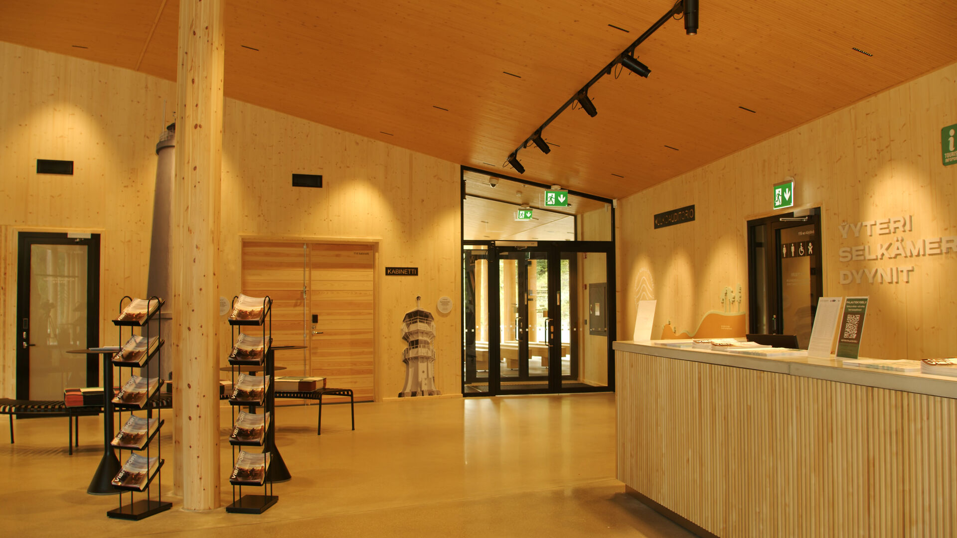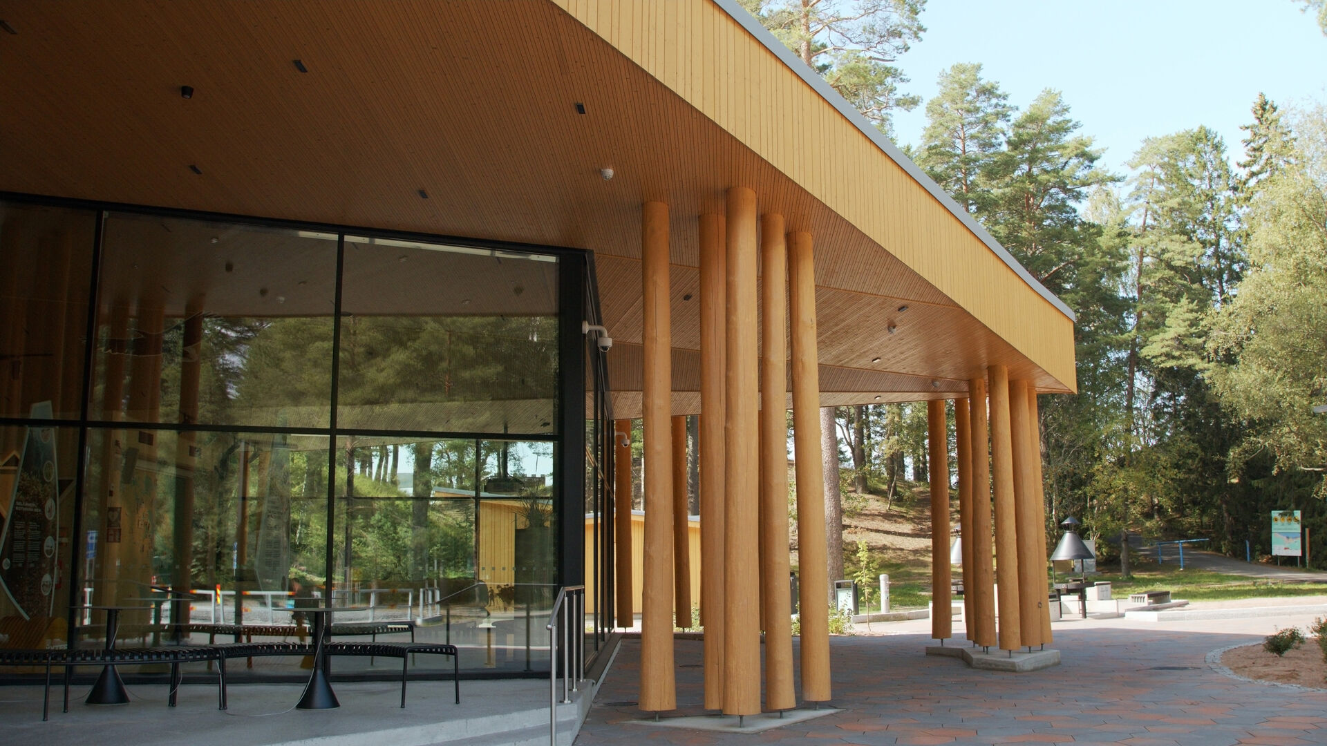 Yyterin vierailukeskus on käsitelty Teknoksen HELO® SOLANA WAX -hirsivahalla. Katto on sävytetty Teknoksen sävyllä T8001.