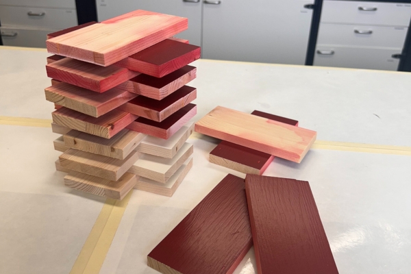 Blocking properties are what keep the coating from sticking to itself or other surfaces when doors or windows are stacked. At the laboratory they test and simulate real-world situations. To make sure AQUATOP® VIRTA passed this test, the team dried the coating for 4 to 6 hours, then stacked the samples together with high pressure at varying temperatures and humidities. The results showed that AQUATOP® VIRTA could be handled without any issues, no matter the season or climate.